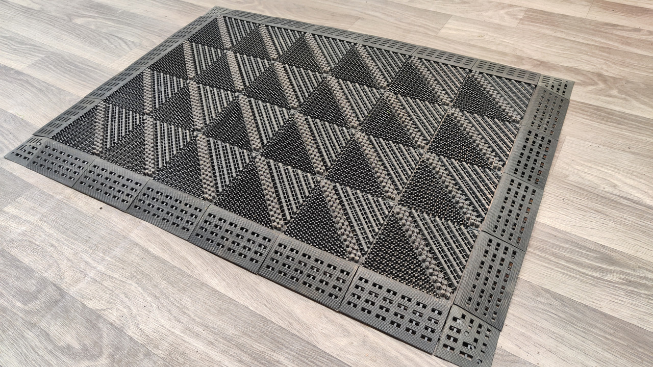 Грязезащитное покрытие ProMat состоит из модулей размером 150х150мм и модулей для обрамления 150х70мм.